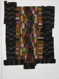 I was in the studio at 6 AM this morning (before work) washing out the dye from Sunday and Monday. Last night, all of Sunday's wax and print work got a nice over-dye. I left 12 yards of cloth drying on the line today while I'm at work so they'll be ready for me when I get home. Tonight I get to press out all of the wax (ironing between mountains of newspaper) and launder out the residue. This is about my least favorite task, but it's the only way forward it I want to apply more color. It's that Karate Kid thing--wax on; wax off.